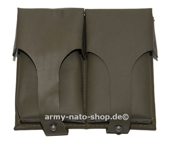 Magazintasche orig. Magazintasche aus gummierten Gewebe der Bundeswehr für 2 Stück Gewehr G3 Magazine. Farbe: oliv Maße: 19,5 x 16,5 x 4,0 cm Material: gummiertes Gewebe