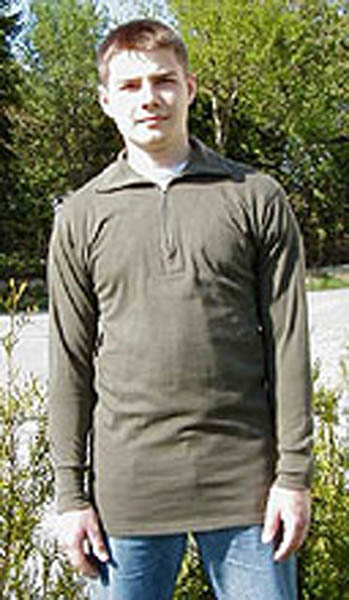 Warmes langarm Trikothemd mit durchgehendem Reißververschluss aus Kunststoff und Rollkragen.